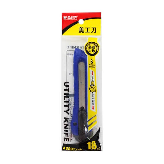 Our M&G utility knife with an 18mm wide blade is designed for heavy-duty cutting tasks, featuring a manual blade lock for safe and secure use. Its SK5 high carbon blades are ultra-sharp and durable, providing long-lasting cutting performance. Despite its high-quality build and features, it is offered at an economical price, making it accessible to a wide range of our customers. Perfect for use in the workshop, home improvement projects, and other demanding cutting applications.